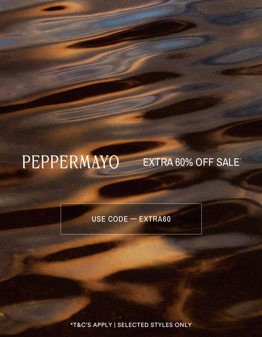 T&C's: Take a further 60% off sale items. Available on all Sale products with no minimum spend. The code EXTRA60 must be entered at the time of checkout to receive the discount. This offer cannot be used in conjunction with any other promotion or discount. Please note red-penned Final Sale items are non-returnable. The offer may be revoked at any time at Peppermayo's ultimate discretion.