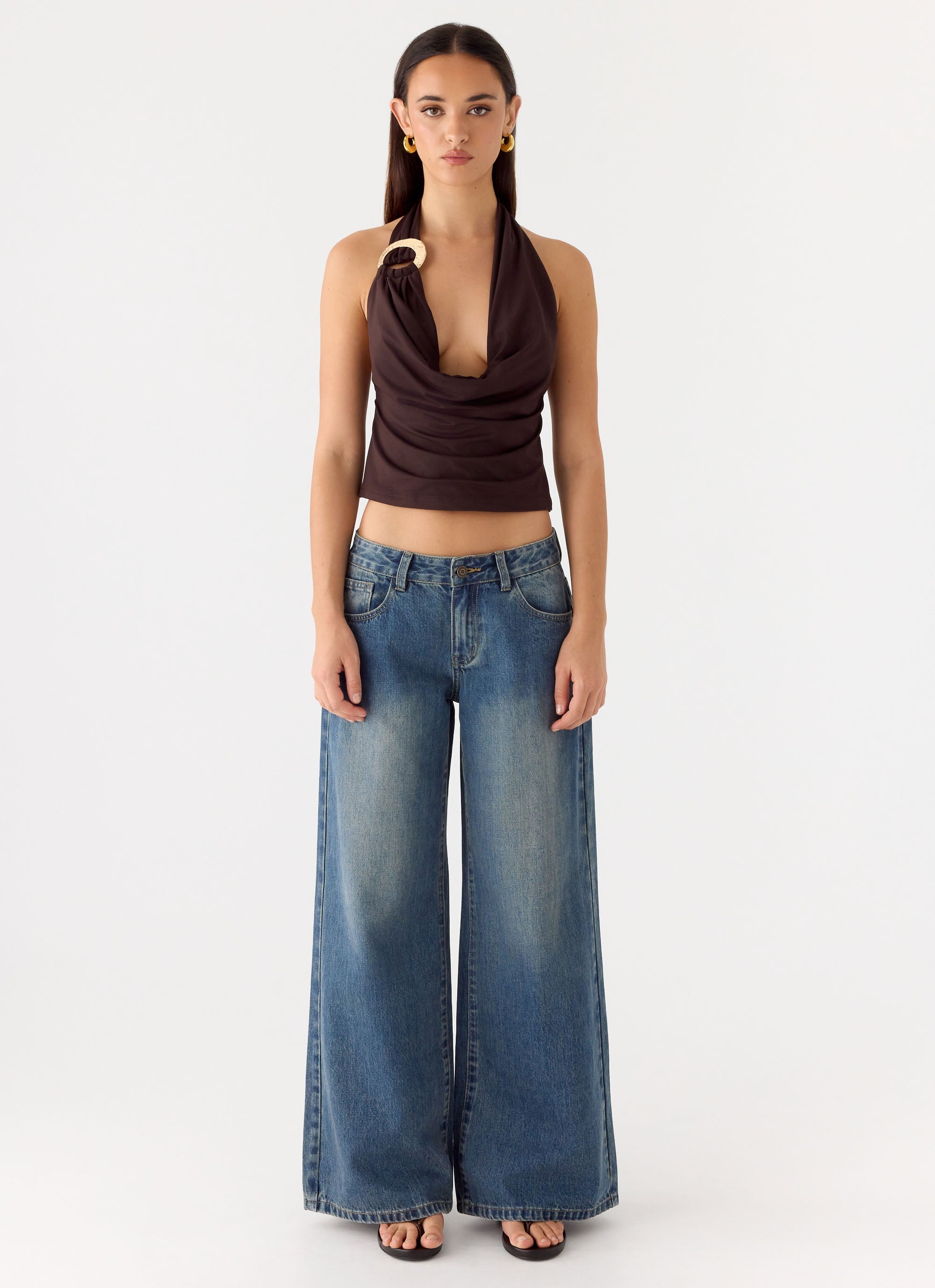 The Jonna Top is designed for effortless glamour from sunset to late-night moments. Featuring a low cowl neckline and a low back, it drapes elegantly over the body while a front gold embellishment adds a touch of luxe. Crafted in stretch jersey, it moves with ease for a flattering, comfortable fit.