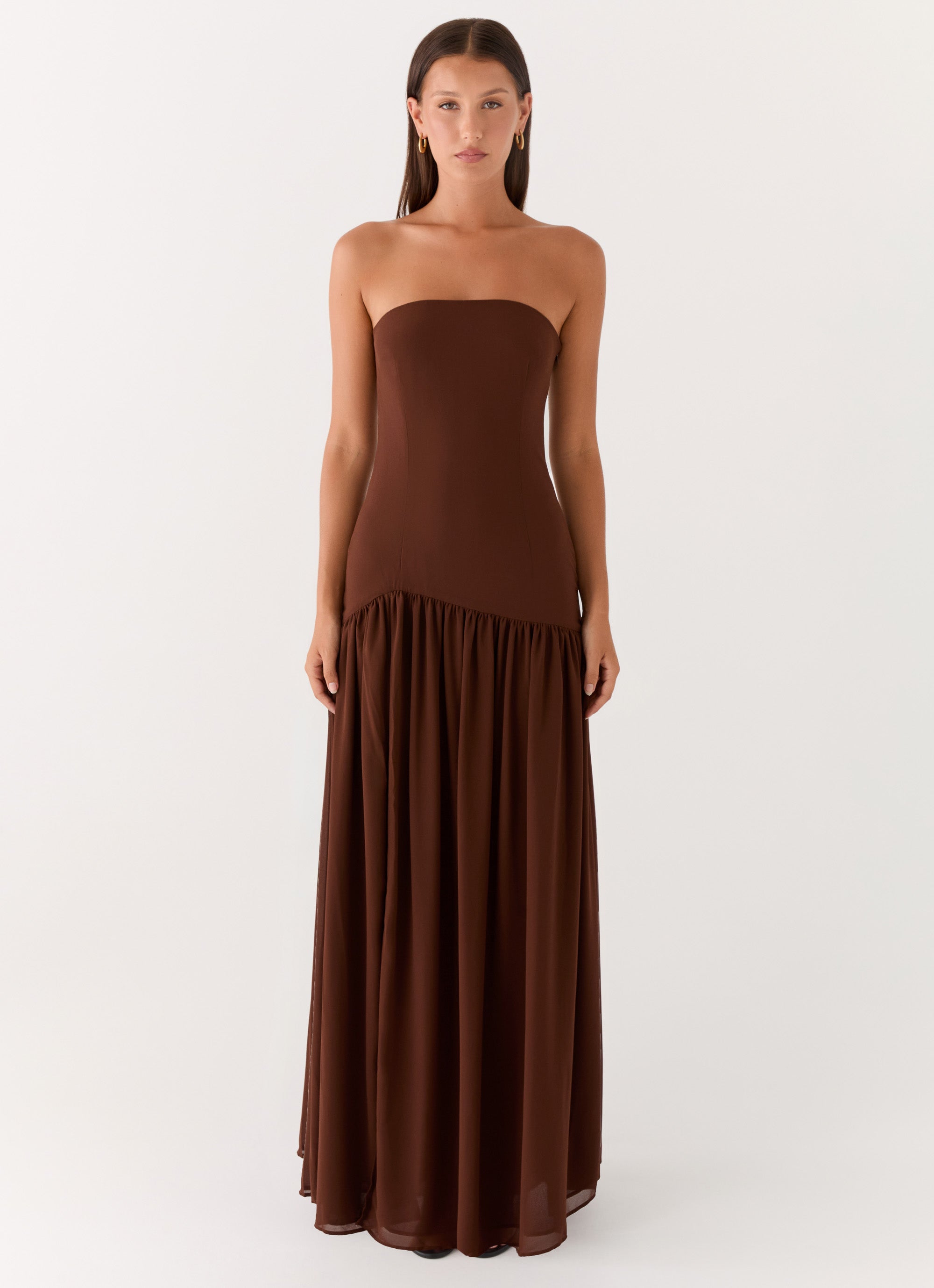 Eden Strapless Maxi Dress - Brown