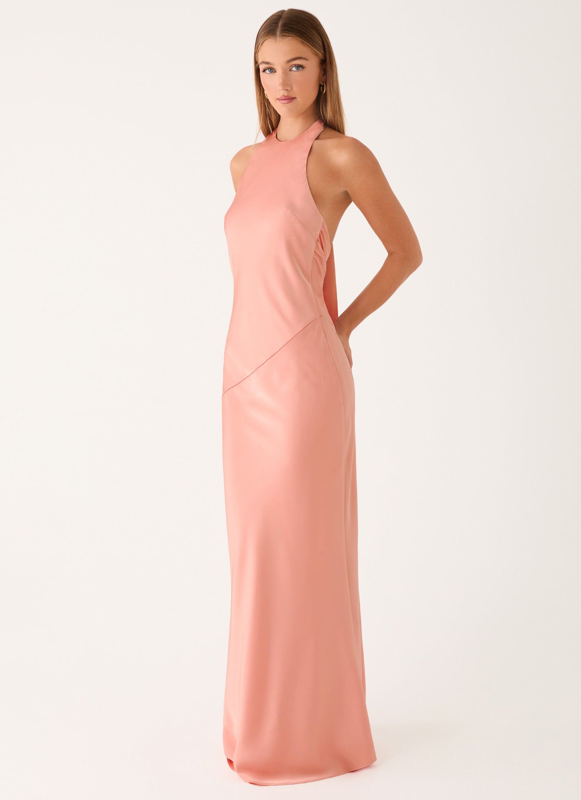 The Jasmanie Maxi Dress is designed to elongate the silhouette with its floor-length cut and halter neckline featuring a thick adjustable strap. The low back and smooth satin fabric create a sleek, elegant finish, while the fully lined design and side invisible zipper ensure comfort and structure.