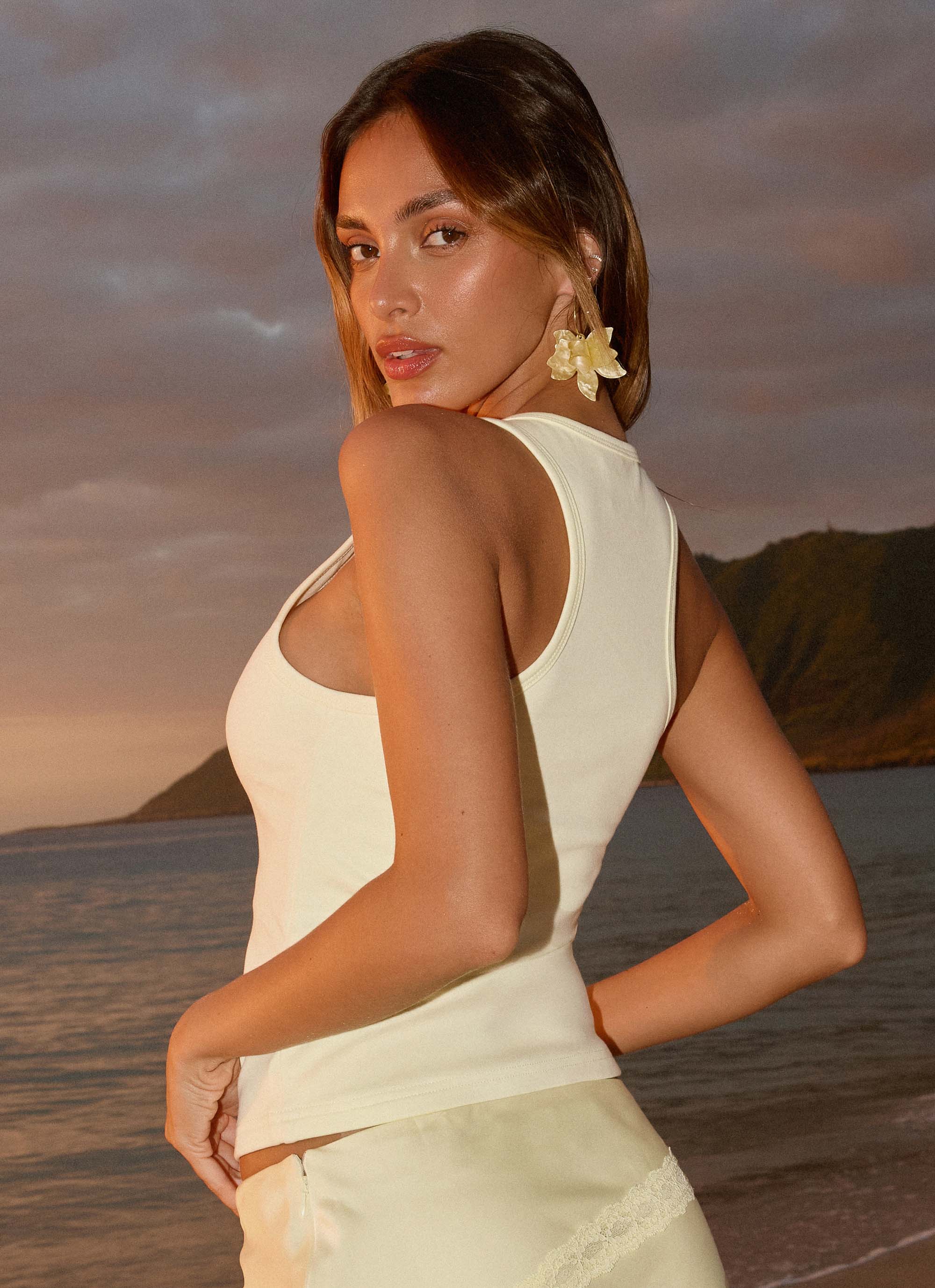 The Silka Top is made for warm nights and effortless confidence. Designed with a low scoop neckline and a sleek, body-hugging silhouette, it flatters from every angle. Finished with a racer-style back and a smooth, fully lined feel, it’s the ultimate sunset-to-sundown staple.
