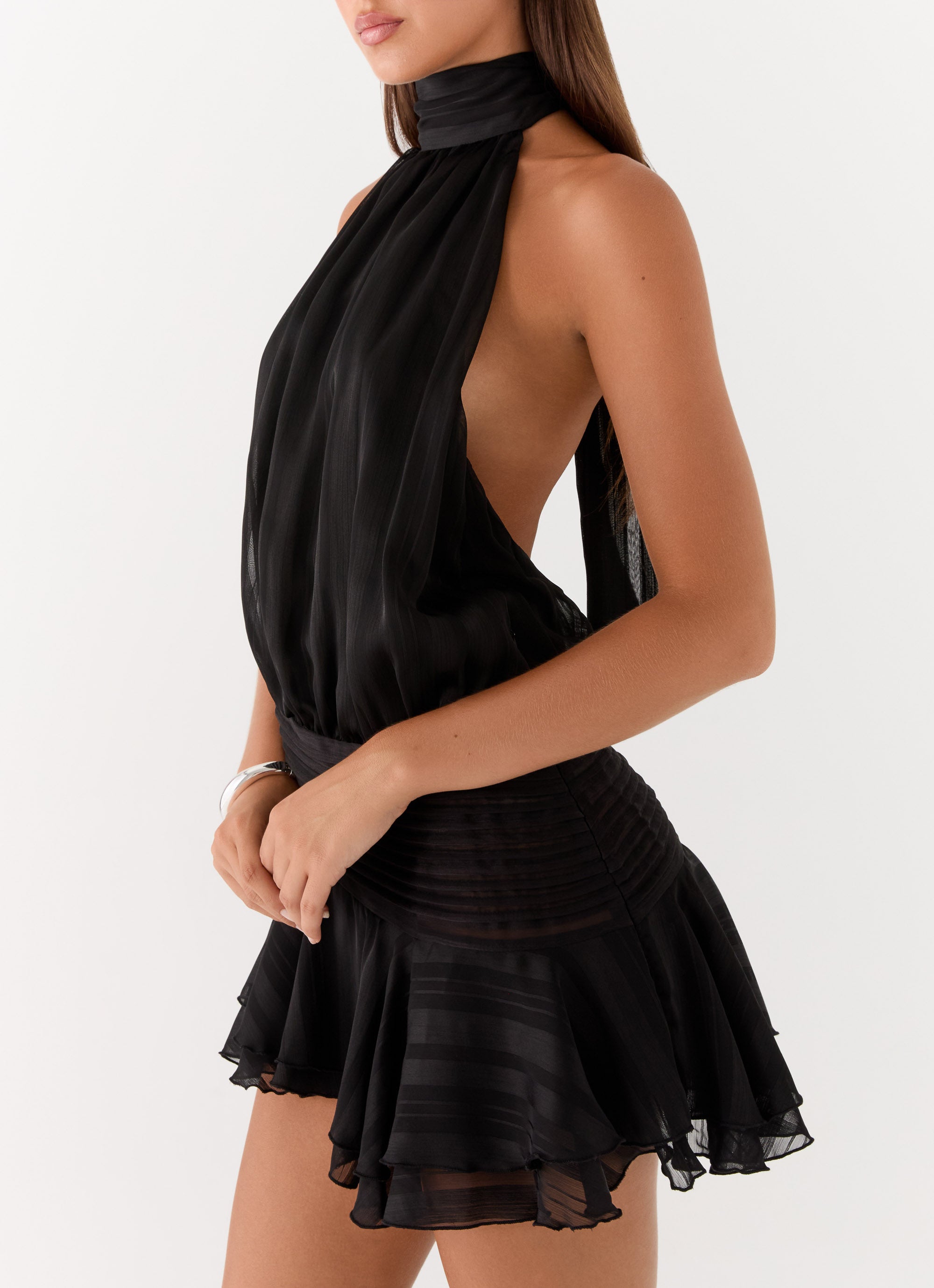 Willow Chiffon Mini Dress - Black
